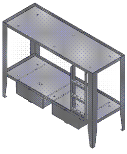 Bunk Shelf (J-1-8671) (not shown) Bunk shelf is fabricated from 10 gauge HRPO steel and is bolted under the bunk pan with (8) 1/4-20 button head Torx� screws.� The size of the shelf is 24� wide x 24� long x 8� high and will be prime or finished painted according with the paint requirements of the bunk.� Note:� JCP Model J-8671 denotes a quantity of (1) one shelf independent of the number of bunk pans.