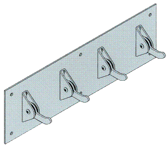The back plate for the weld mount (2) safety hook is fabricated from 7 gauge HRPO steel and is 5� x 9� and will have four 1/2� diameter holes for installation to the wall with security anchors provided by the installer.� The back plate assembly will receive one shop coat of our standard primer.