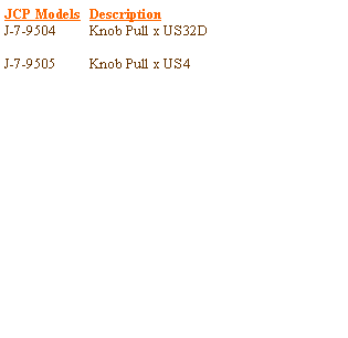 JCP Specifications:� The JCP knob pull has a 2-1/4� diameter knob, a 3-1/4� diameter base, a projection of 2-1/4�, and is supplied with 10-24 x 1/2� long Torx� w/ Pin security screws.� The knob pull is available as an investment cast stainless steel unit in US32D finish, or investment cast brass unit in US4 finish.